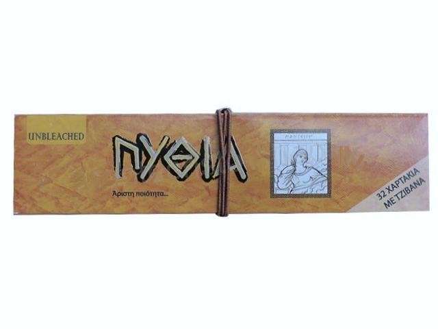 Χαρτάκια ΠΥΘΙΑ King Size Ακατέργαστα (Καφέ) με 32 φύλλα με τζιβάνες - 1 Πακετάκι