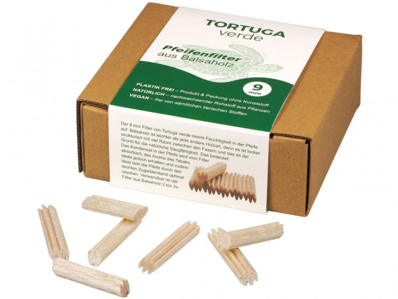 Τα φίλτρα για πίπα καπνού TORTUGA VERDE 9mm Pipe Filters 110 τεμ, απευθύνονται σε πίπες που δέχονται 9mm φίλτρο. Εξωτερικά θυμίζουν την "ψίχα" ενός καλαμιού. Είναι ελαφριά, πορώδες, κρατούν την υγρασία και όλα αυτά διατηρώντας την γεύση και το άρωμα του καπνού στην πραγματική του διάσταση. Με λίγα λόγια είναι ένα κομμάτι ξύλου που μπορεί να μην κατακρατεί τόσες βλαπτικές ουσίες όσο ο ενεργός άνθρακας, όμως το αποτέλεσμα θα είναι η ρεαλιστική απόδοση των αιθεριων ελαίων με τέτοιο τρόπο που θα σας εντυπωσιάσει.
