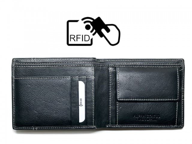 Όλα τα πορτοφόλια ALPHA STATUS είναι εφοδιασμένα με το ειδικό σύστημα προστασίας RFID το οποίο δημιουργεί μια ηλεκτρονική ομπρέλα προστασίας για τις χρεωστικές και πιστωτικές κάρτες σας. Έτσι δεν χρειάζεται πλέον να ανησυχείτε για κακόβουλες επιθέσεις σε σημεία με συνωστισμό, στα οποία άγνωστοι, με ειδικά μηχανάκια ανέπαφων συναλλαγών μπορούν να ¨ξαφρίσουν¨ την κάρτα σας.