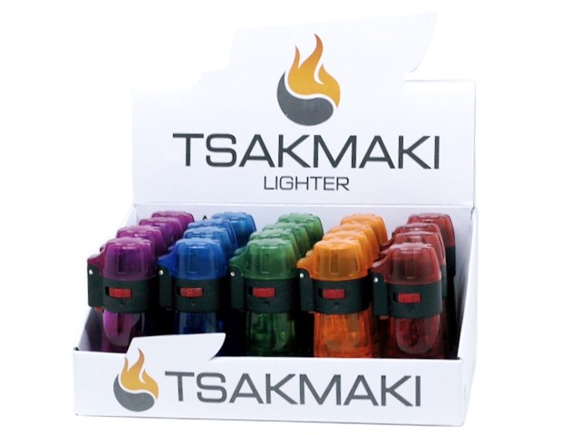 Αναπτήρας TSAKMAKI Αντιανεμικός Jet Flame 708 Βαρελάκι διάφανο - Κουτί 20 τεμαχίων