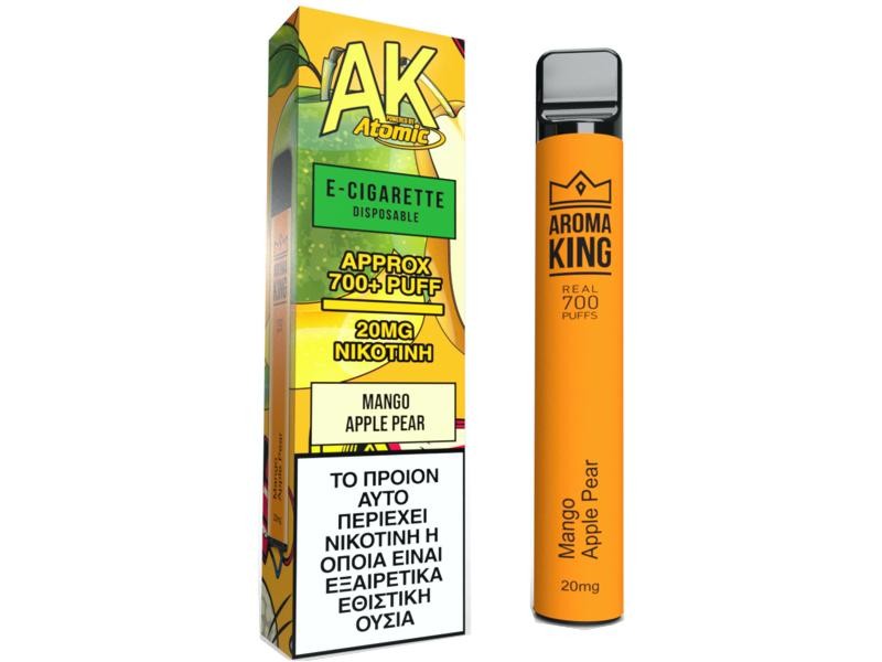 Το ηλεκτρονικό τσιγάρο μιας χρήσης AK ATOMIC AROMA KING MANGO APPLE PEAR 2ml με νικοτίνη 20mg διαθέτει πλούσια γεύση από μάνγκο, μήλο και αχλάδι.