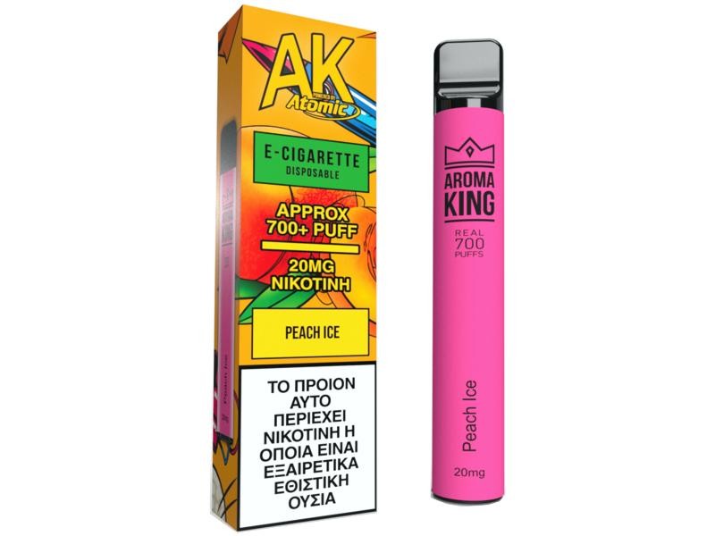 Το ηλεκτρονικό τσιγάρο μιας χρήσης AK ATOMIC AROMA KING PEACH ICE 2ml με νικοτίνη 20mg διαθέτει πλούσια γεύση από ροδάκινο με μέντα