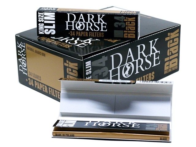 Τα χαρτάκια στριφτού DARK HORSE BLACK King Size Slim COMBI PACK περιέχουν 34 φύλλα και 34 τζιβάνες. Διαθέτουν αραβική φυτική κόλλα.