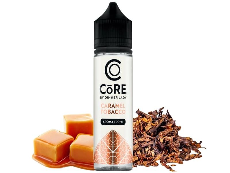 Το Shake and Vape DINNER LADY CORE FLAVOUR SHOT CARAMEL TOBACCO 20/60ml διαθέτει καπνική γεύση με καραμέλα.