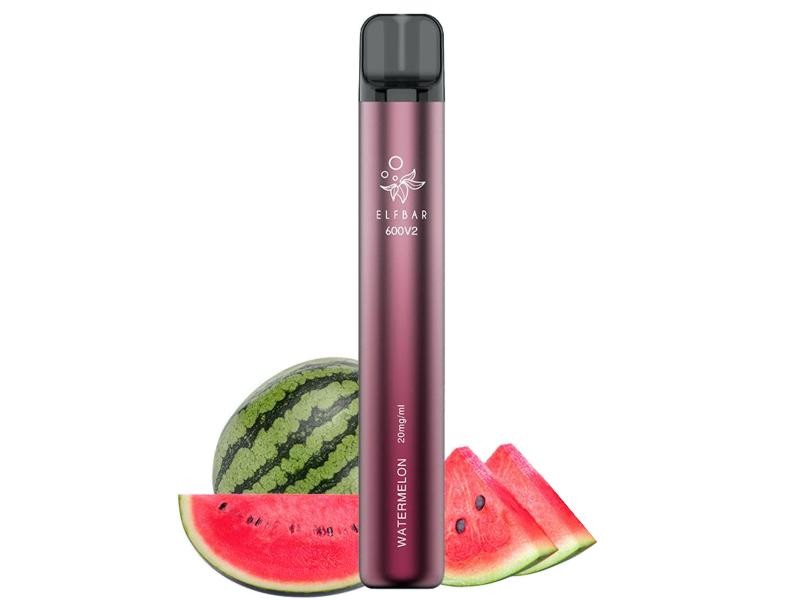 Το ηλεκτρονικό τσιγάρο μιας χρήσης ELF BAR EB 600V2 WATERMELON διαθέτει φρουτώδες άρωμα από καρπούζι.