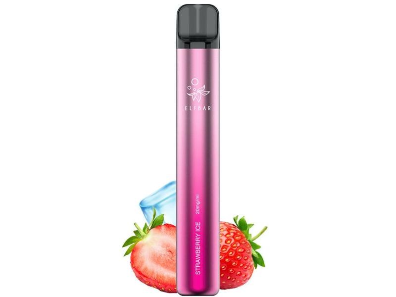 Το ηλεκτρονικό τσιγάρο μιας χρήσης ELF BAR EB 600V2 STRAWBERRY ICE διαθέτει φρουτώδες άρωμα από φράουλα με πάγο.