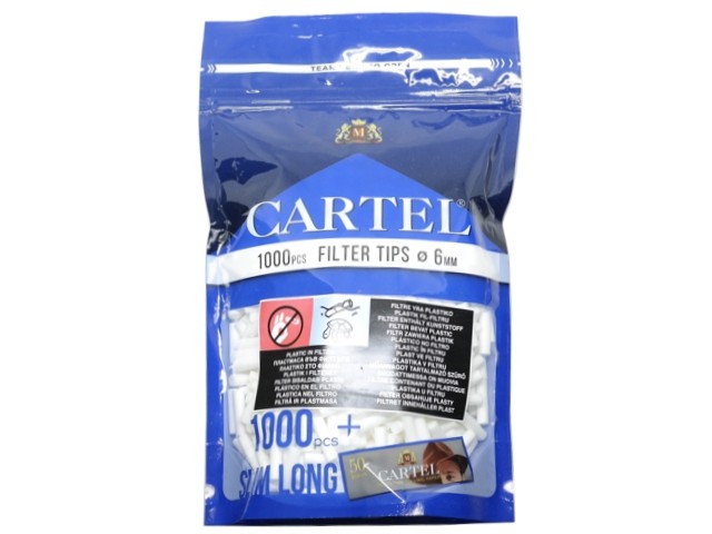 Τα φιλτράκια στριφτού Cartel Filter Slim Long 6mm περιέχουν 1000 φίλτρα σε οικονομική συσκευασία και έχουν το μακρύτερο μήκος από όλα τα φίλτρα, δηλαδή 22mm. Με λίγα λόγια απευθύνεται σε καπνιστές που θέλουν ισχυρό φιλτράρισμα στην χαμηλότερη τιμή της αγοράς. Επίσης το κάθε φιλτράκι Cartel είναι τυλιγμένο με χαρτί για καλύτερο αποτέλεσμα και για λιγότερο κιτρίνισμα στα δάχτυλα.