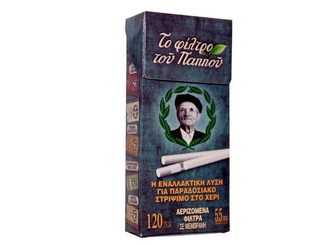 Τα φιλτράκια στριφτού Του Παππού έχουν πολύ λεπτό μέγεθος 5.5mm και αεριζόμενο φίλτρο τυλιγμένα σε μεμβράνη. Η κάθε συσκευασία περιέχει 120 φιλτράκια.