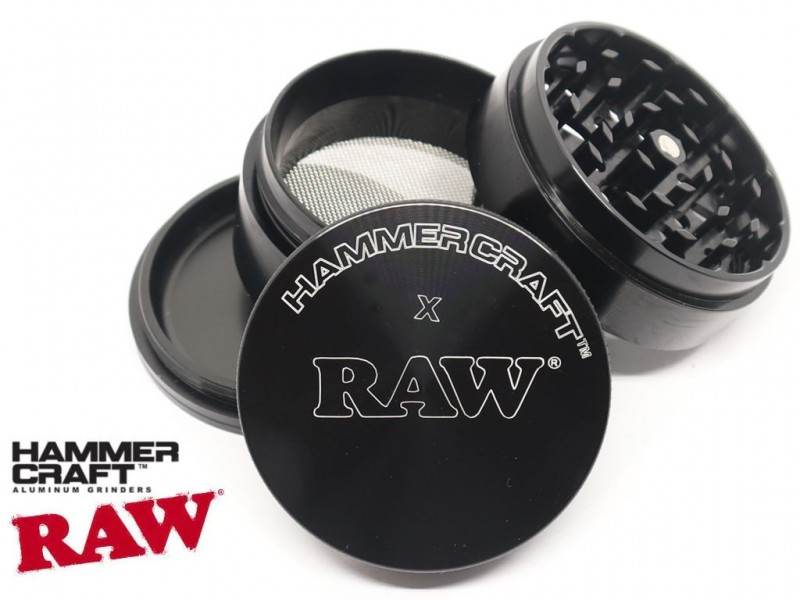 HAMMERCRAFT X RAW ALUMINIUM BLACK LARGE 63mm 4 PARTS GRINDER