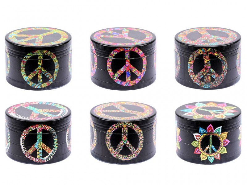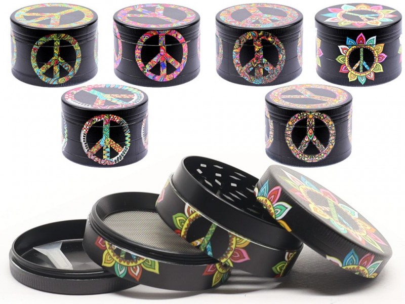 Ο τρίφτης καπνού ATOMIC Metal Grinder PEACE 52mm 4 Parts είναι κατασκευασμένο από μέταλλο, είναι όλο το Grinder σχεδιασμένο και διαθέτει 4 πατώματα (μέρη). Τυχαία επιλογή σχεδίου.