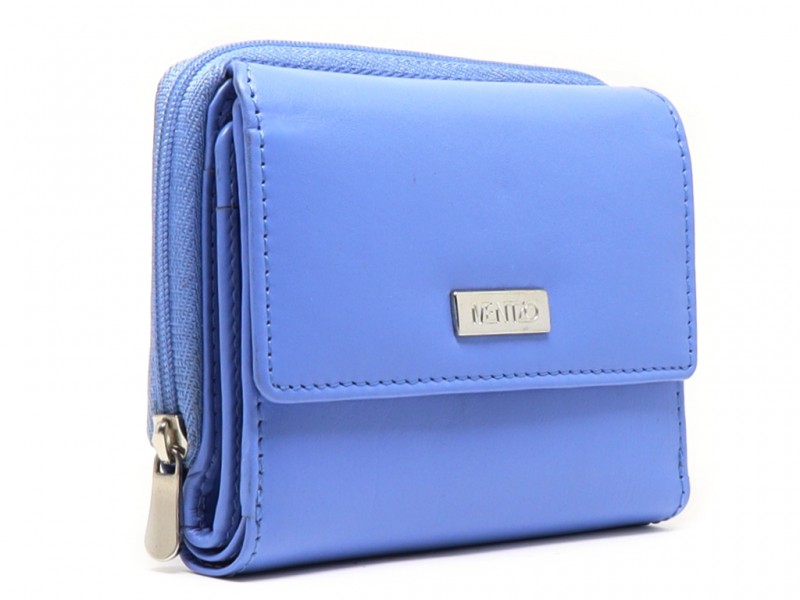 Το γυναικείο πορτοφόλι MENTZO CALYPSO L201 BLUE RFID ανήκει στην κατηγορία των μεσαίων πορτοφολιών, κλείνει εύκολα με κουμπί, διαθέτει πολλές θήκες για χαρτονομίσματα, κέρματα και κάρτες. Είναι κατασκευασμένο από υψηλής ποιότητας δέρμα μοσχάρι. Ακόμη και μέσα δέρμα, που σημαίνει τεράστια αντοχή στο καθημερινό άνοιξε - κλείσε, σε αντίθεση με παρόμοια πορτοφόλια που διαθέτουν ακρυλικό PU στο εσωτερικό και σύντομα αλλοιώνονται. Τα κοψίματα και οι γραμμές του ξεχωρίζουν για την αρτιότητα που οδηγεί στο τέλειο αποτέλεσμα.
