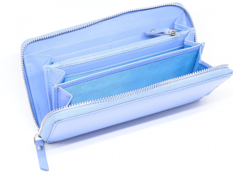 Το γυναικείο πορτοφόλι MENTZO SELENE L202 BLUE RFID ανήκει στην κατηγορία των μεγάλων πορτοφολιών, κλείνει εύκολα με φερμουάρ, διαθέτει πολλές θήκες για χαρτονομίσματα, κέρματα, κάρτες, προσωπικά αντικείμενα και θα μπορούσε να χωρέσει ακόμη και ένα μεσαίου μεγέθους κινητό. Είναι κατασκευασμένο από υψηλής ποιότητας δέρμα μοσχάρι. Ακόμη και μέσα δέρμα (φυσαρμόνικα), που σημαίνει τεράστια αντοχή στο καθημερινό άνοιξε - κλείσε, σε αντίθεση με παρόμοια πορτοφόλια που διαθέτουν ακρυλικό PU στο εσωτερικό και σύντομα αλλοιώνονται. Τα κοψίματα και οι γραμμές του ξεχωρίζουν για την αρτιότητα που οδηγεί στο τέλειο αποτέλεσμα.