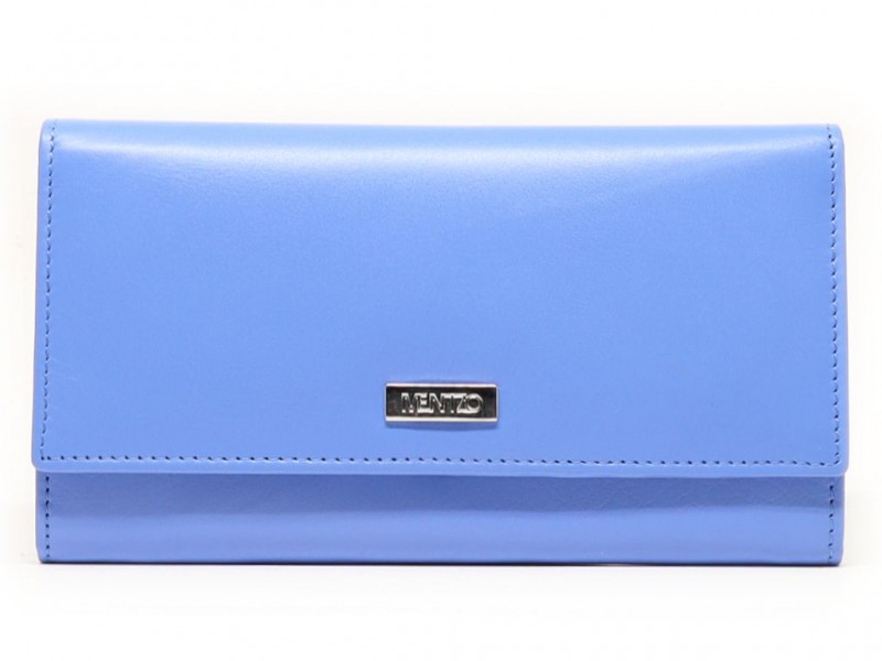 Το γυναικείο πορτοφόλι MENTZO ATHENA L310 BLUE RFID ανήκει στην κατηγορία των μεγάλων πορτοφολιών, κλείνει εύκολα με κουμπί, μπορεί να χωρέσει στην πίσω εξωτερική θήκη ακόμη και ένα κινητό τηλέφωνο μεσαίου μεγέθους, διαθέτει πολλές θήκες για χαρτονομίσματα, κέρματα και κάρτες. Είναι κατασκευασμένο από υψηλής ποιότητας δέρμα μοσχάρι. Ακόμη και μέσα δέρμα, που σημαίνει τεράστια αντοχή στο καθημερινό άνοιξε - κλείσε, σε αντίθεση με παρόμοια πορτοφόλια που διαθέτουν ακρυλικό PU στο εσωτερικό και σύντομα αλλοιώνονται. Τα κοψίματα και οι γραμμές του ξεχωρίζουν για την αρτιότητα που οδηγεί στο τέλειο αποτέλεσμα.
