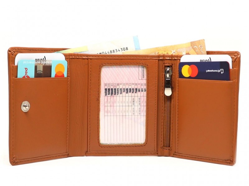 Το πορτοφόλι MENTZO L301 TAN IRIS RFID ανήκει στην κατηγορία των μικρών πορτοφολιών, κλείνει στα τρία με κουμπί, διαθέτει δύο θήκες για χαρτονομίσματα, δίπλωμα και κάρτες και απευθύνεται σε άντρες & γυναίκες. Είναι κατασκευασμένο από υψηλής ποιότητας δέρμα μοσχάρι. Ακόμη και μέσα δέρμα, που σημαίνει τεράστια αντοχή στο καθημερινό άνοιξε - κλείσε, σε αντίθεση με παρόμοια πορτοφόλια που διαθέτουν ακρυλικό PU στο εσωτερικό και σύντομα αλλοιώνονται. Τα κοψίματα και οι γραμμές του ξεχωρίζουν για την αρτιότητα που οδηγεί στο τέλειο αποτέλεσμα.