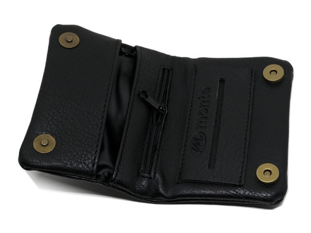 Η καπνοθήκη MONTE 0705 ΜΑΥΡΗ MINI DONUT είναι κατασκευασμένη από συνθετικό τεχνόδερμα PU. Είναι μικρή, μαύρου χρώματος και δέχεται χύμα καπνό μέχρι 30gr. Οι θέσεις για χαρτάκια, φιλτράκια και αναπτήρα ικανοποιούν τις ανάγκες του πιο απαιτητικού χρήστη ενώ επίσης διαθέτει τέσσερις εξωτερικούς μαγνήτες για αξιόπιστο κλείσιμο.