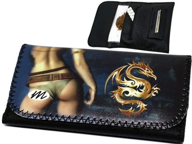 Η καπνοθήκη MONTE 0114 GOLDEN DRAGON ROXY είναι κατασκευασμένη από συνθετικό τεχνόδερμα PU και διπλώνει στα τρία. Είναι μεγάλη, μαύρου χρώματος και έχει θέση με αδιάβροχη επένδυση για σακουλάκι καπνού μέχρι 30gr ή χύμα καπνό. Οι θέσεις για χαρτάκια, φιλτράκια και αναπτήρα ικανοποιούν τις ανάγκες του πιο απαιτητικού χρήστη ενώ επίσης διαθέτει τέσσερις εσωτερικούς μαγνήτες για αξιόπιστο κλείσιμο.