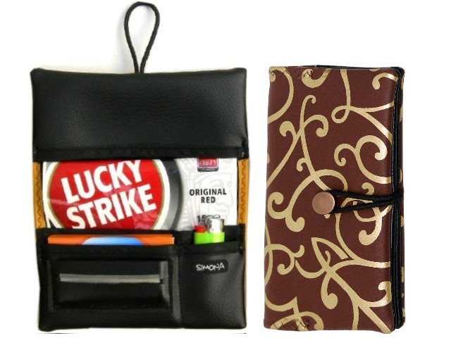 Η καπνοθήκη SIMONA 997 118 είναι καφέ χρώματος με χρυσές γραμμές, κατασκευασμένη από συνθετικό τεχνόδερμα και έχει μεγάλο μέγεθος. Διαθέτει θέση για χαρτάκια, φιλτράκια και αναπτήρα ενώ ο καπνός τοποθετείται σε σακουλάκι μέχρι 30γρ.
