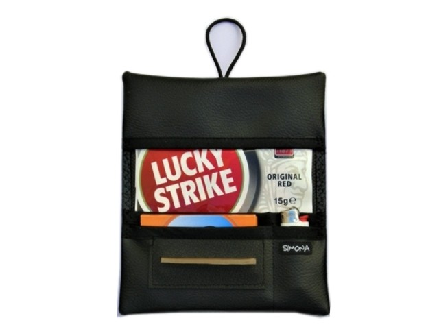 Η καπνοθήκη SIMONA 997 171 έχει χρώμα πορτοκαλί ανάγλυφη και είναι κατασκευασμένη από ανάγλυφο PVC το οποίο προσδίδει ρεαλισμό στα σχέδια και στα χρώματα της καπνοσακούλας. Είναι μεγάλη σε μέγεθος και μπορεί να χωρέσει έναν καπνό 30gr, μπορεί να δεχτεί μόνο σακουλάκι καπνού και διαθέτει θέσεις για χαρτάκια φιλτράκια και αναπτήρα. Κλείνει με ανθεκτικό λαστιχάκι.