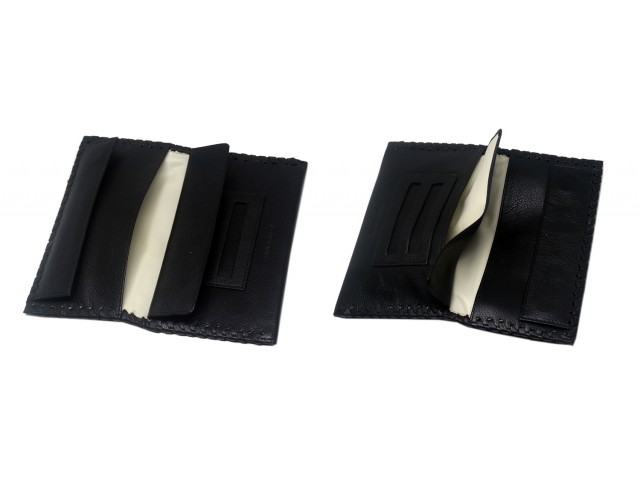Ανοίγει σαν φάκελος και κλείνει με 2 μαγνητικά κουμπιά. Μέσα υπάρχει θέση για 2 χαρτάκια και πίσω θέση για φιλτράκια