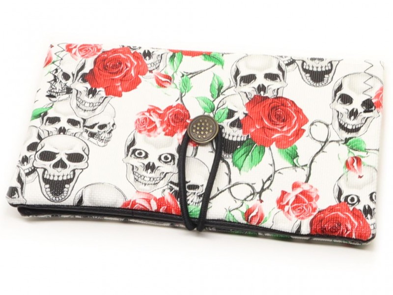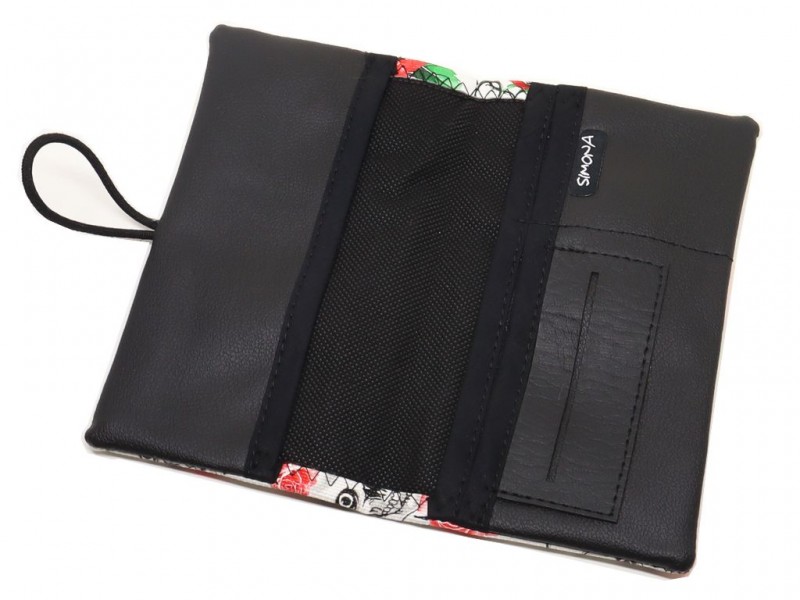 Η καπνοθήκη SIMONA 997 190 SKULL & ROSES είναι κατασκευασμένη από τεχνόδερμα . Μπορεί να δεχτεί μόνο σακουλάκι καπνού και διαθέτει θέσεις για χαρτάκια φιλτράκια και αναπτήρα. Κλείνει με ανθεκτικό λαστιχάκι.