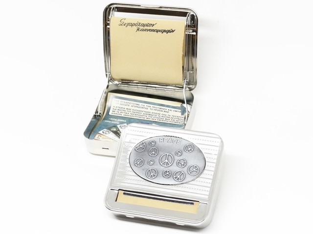 Η μηχανή στριφτού του παππού 47302-010 PEACE ταμπακιέρα ασημί μεταλλική 6 & 8mm 70mm είναι συμβατή με στριφτά 6mm / 8mm, μπορεί να στρίψει το αγαπημένο σας κανονικό στριφτό, αλλά και να αποθηκεύσετε σε αυτήν καπνό ή τα σύνεργα σας. Διαθέτει υφασμάτινο πανάκι για καλύτερο αποτέλεσμα και είναι ιδανική για όλα τα στριφτά.