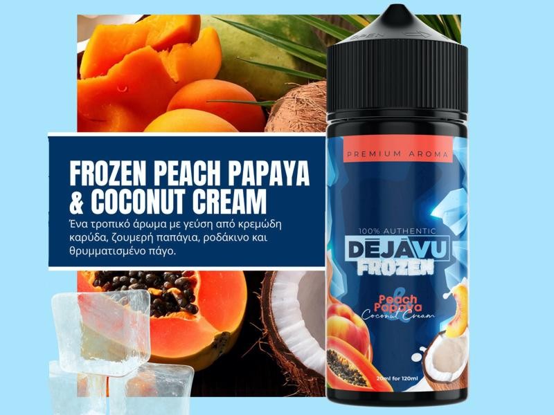 Το Shake and Vape ΝΤΕΖΑΒΟΥ 100% AUTHENTIC FROZEN PEACH PAPAYA AND COCONUT CREAM 20ml διαθέτει υπέροχη γεύση από ροδάκινο,παπάγια, κρεμώδη καρύδα και πάγο.