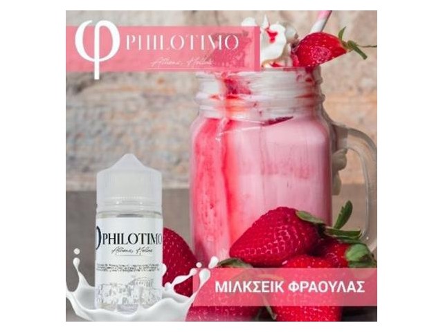 Το υγρό για ηλεκτρονικό τσιγάρο PHILOTIMO ΜΙΛΚΣΕΪΚ ΦΡΑΟΥΛΑΣ Shake and Vape 30/75ML έχει υπέροχη γεύση από γλυκές φράουλες γάλα και γιαούρτι.