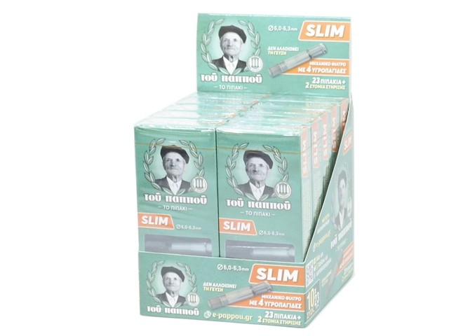 Κουτί με 10 πακετάκια πιπάκια ΤΟΥ ΠΑΠΠΟΥ με αποσπώμενο στόμιο για στριφτό slim 6mm τσιγάρο.