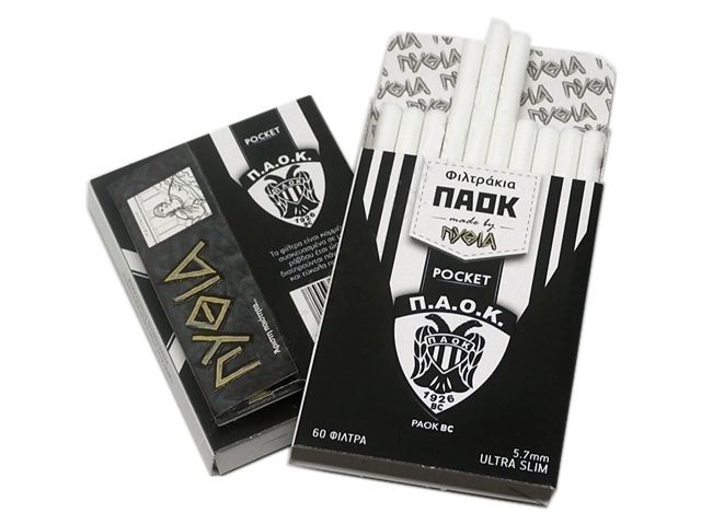 Φιλτράκια ΠΥΘΙΑ ΠΑΟΚ Pocket Ultra Slim 5.7mm, 60 & χαρτάκια ΠΥΘΙΑ ΜΑΥΡΑ - 1 πακετάκι