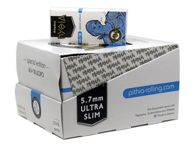 Τα φιλτράκια στριφτού ΠΥΘΙΑ έχουν αρκετά λεπτό μέγεθος Extra Slim 5.7mm και μήκος 15mm.