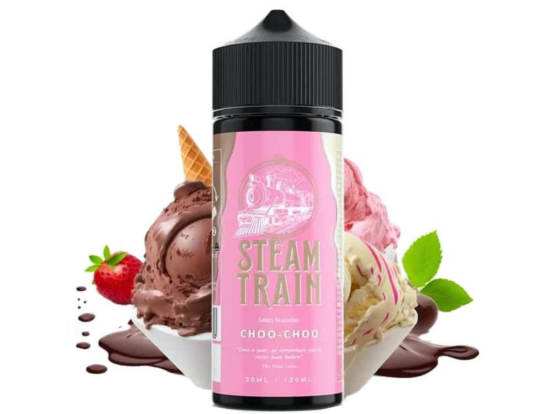 Το Shake and Vape STEAMTRAIN Flavour Shot CHOO CHOO 30ml διαθέτει λαχταριστή γεύση από παγωτό σοκολάτα, φράουλα και βανίλια. Η μίξη που πρέπει να πραγματοποιήσετε είναι υποχρεωτικά μέχρι τα 120ml.