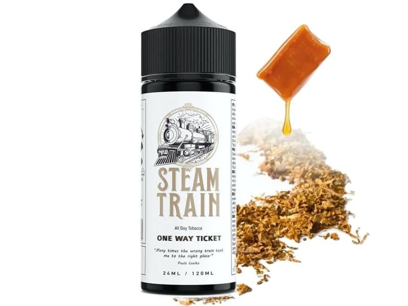 Το Shake and Vape STEAMTRAIN Flavour Shot ONE WAY TICKET 24ml σας παρέχει απλόχερα το βίωμα μιας υπέροχης καπνικής εμπειρίας εμπλουτισμένη με λαχταριστή καραμέλα. Η μίξη που πρέπει να πραγματοποιήσετε είναι υποχρεωτικά μέχρι τα 120ml.