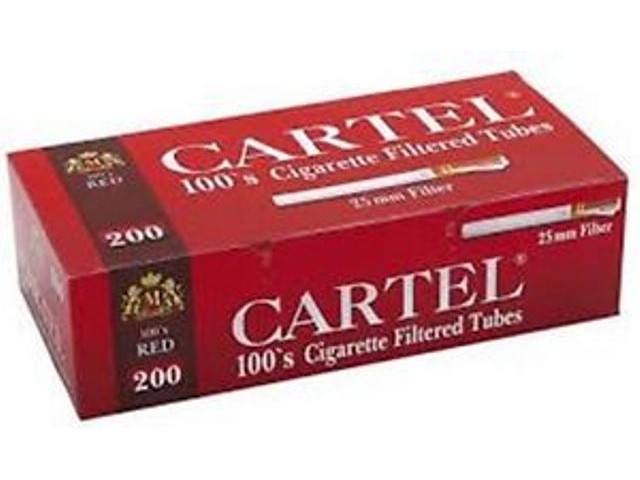 Τα άδεια τσιγάρα Cartel 100's Red 25mm Filter διαθέτουν 25mm μακρύ φίλτρο αλλά συνολικά έχουν και μακρύτερο μήκος από όλα τα υπόλοιπα τσιγάρα. Με λίγα λόγια μας παραπέμπουν στα "κατοστάρια τσιγάρα" για χορταστικό κάπνισμα. Τα άδεια τσιγάρα Cartel 100s Red είναι 200 συνολικά και έχουν κανονικό πάχος χαρτιού για κανονική καύση. Μην ξεχνάτε να χρησιμοποιήσετε ειδική μηχανή για εκατοστάρια μακρυά άδεια τσιγάρα.