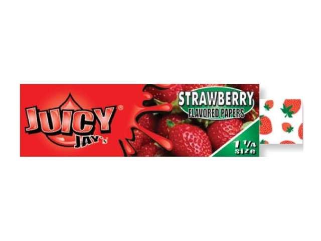 Τα αρωματικά χαρτάκια στριφτού Juicy Jays 1&1/4 Strawberry (φράουλα) έχουν λεπτό φύλλο HEMP TREE FREE, πανέμορφα σχέδια σε κάθε φύλλο τους και θα σας συναρπάσει η γεύση τους.