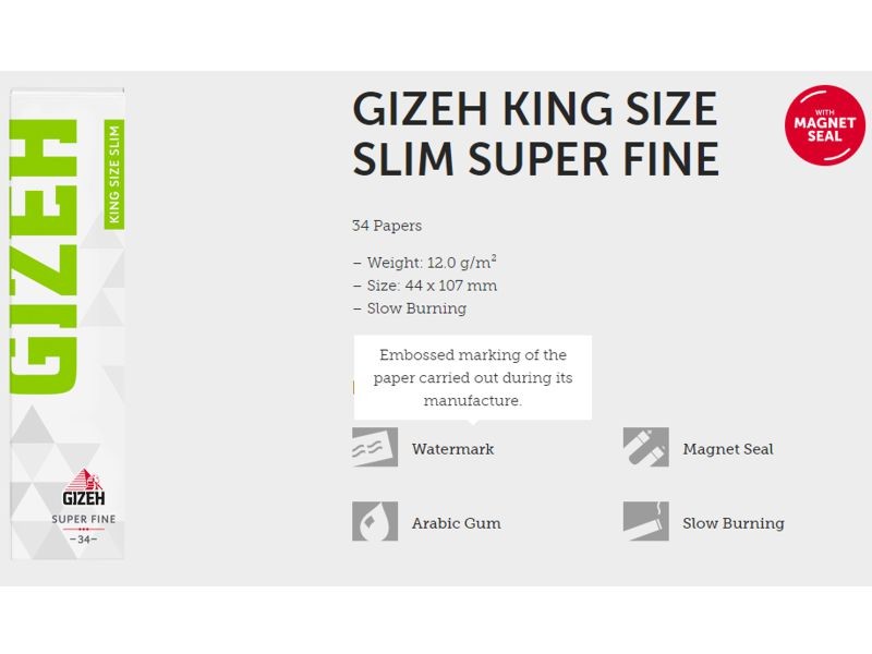GIZEH KING SIZE SLIM SUPER FINE 34 SUPER FINE...