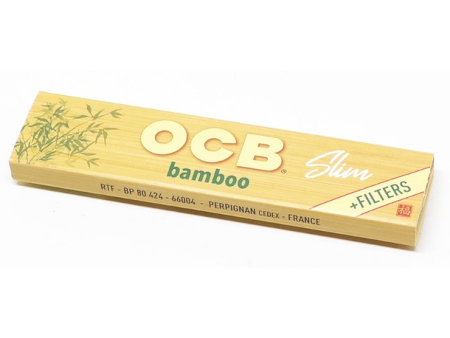 Τα χαρτάκια στριφτού OCB BAMBOO Slim and Filters με τζιβάνες συνοδεύονται από 32 ακατέργαστες τζιβάνες, είναι ακατέργαστα, έχουν King Size μέγεθος, έχουν σκούρο καφέ ημιδιάφανο χρώμα και κατασκευάζονται στην Γαλλία. Χαρτί όχι υπερβολικά λεπτό, αλλά όχι και να σβήνει πολύ εύκολα. Με βάρος 14γρ.μ2 είναι η απόλυτη λύση για ένα στριφτό τσιγάρο στο οποίο θα κυριαρχεί ο καπνός και όχι η ενοχλητική επίγευση του χαρτιού.