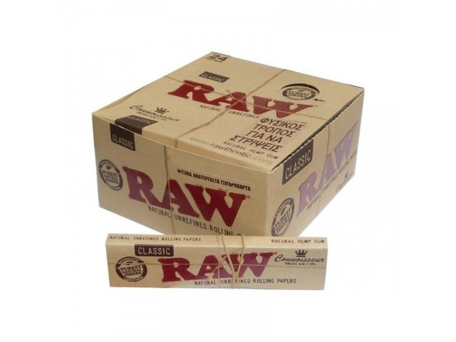 Τα χαρτάκια Raw CLASIC king size Connoisseur, slim+tips με τζιβάνες είναι ακατέργαστα με 32 φύλλα και 32 τζιβάνες
