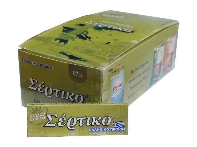 Τα χαρτάκια Σέρτικο κατασκευάζονται στην Ελλάδα και είναι εγκεκριμένα το Γερμανικό οργανισμό τροφίμων και καπνού TVO. Δεν περιέχουν καθόλου χλώριο και έχουν πιστοποίηση TCF ( Totally Chlorine Free). Έχουν προειδοποιητική ένδειξη στα 10 χαρτάκια πριν το τέλος για μην ξεμείνετε. Το συγκεκριμένο χαρτάκι φτιάχνεται από χαρτοπολτό φυσικής κάνναβης