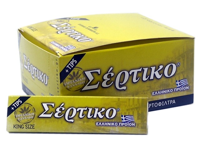 Τα χαρτάκια Σέρτικο κατασκευάζονται στην Ελλάδα και είναι εγκεκριμένα το Γερμανικό οργανισμό τροφίμων και καπνού TVO. Δεν περιέχουν καθόλου χλώριο και έχουν πιστοποίηση TCF ( Totally Chlorine Free). Έχουν προειδοποιητική ένδειξη στα 10 χαρτάκια πριν το τέλος για μην ξεμείνετε. Το συγκεκριμένο χαρτάκι φτιάχνεται από πολτό βιολογικής κάνναβης