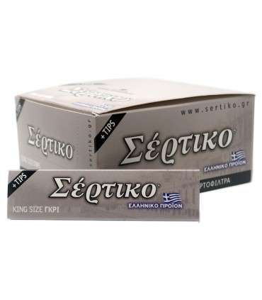 Τα χαρτάκια Σέρτικο κατασκευάζονται στην Ελλάδα και είναι εγκεκριμένα το Γερμανικό οργανισμό τροφίμων και καπνού TVO. Δεν περιέχουν καθόλου χλώριο και έχουν πιστοποίηση TCF ( Totally Chlorine Free). Έχουν προειδοποιητική ένδειξη στα 10 χαρτάκια πριν το τέλος για μην ξεμείνετε.