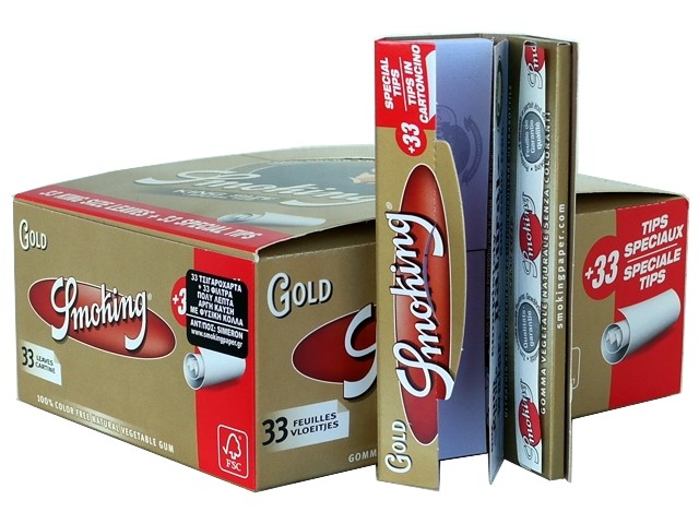 Χαρτάκια Smoking Gold King Size (Χρυσό Μεγάλα) με 33 φύλλα και Τζιβάνες - Συσκευασία των 24