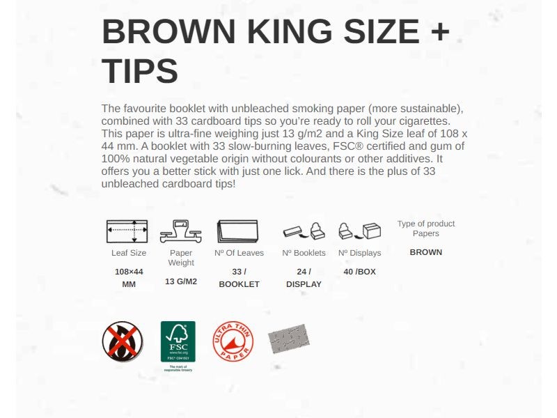 - Τα χαρτάκια στριφτού Smoking BROWN King Size Unbleached+ Tips με Τζιβάνες περιέχουν 33 φύλλα και 33 τζιβάνες σε βολικό πακετάκι.