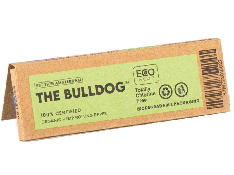Τα χαρτάκια στριφτού THE BULLDOG ECO 1&1/4 hemp από πιστοποιημένο οργανικό πολτό κάνναβης, έχουν μεσαίο μέγεθος και λεπτό πάχος. Σε κάθε φύλλο χαρτιού υπάρχει ειδικό υδατογράφημα το οποίο βοηθάει στην ομοιόμορφη καύση. Είναι φτιαγμένα από πολτό ινδικής κάνναβης και η κόλλα τους είναι αραβική.