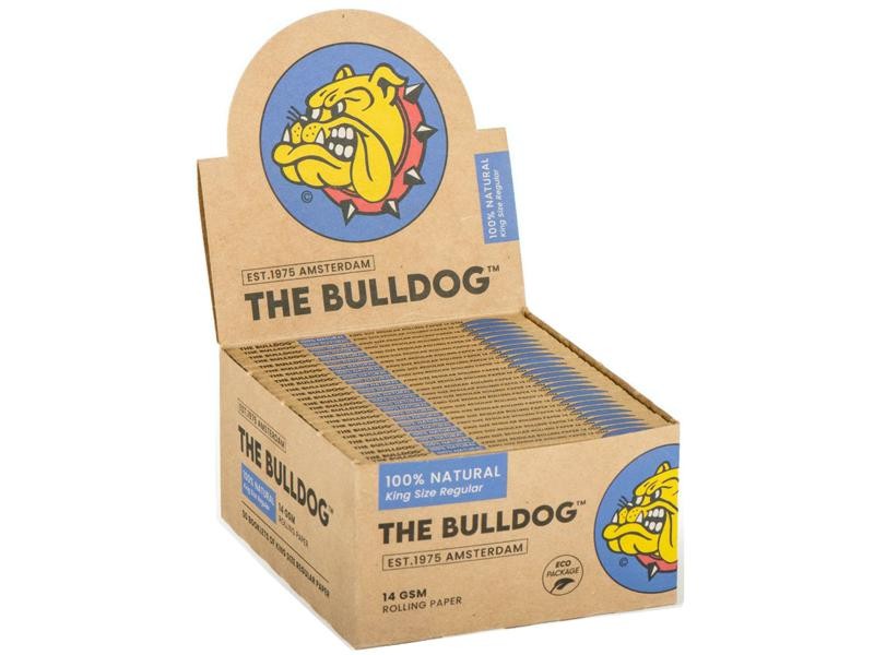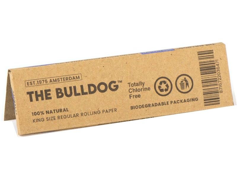Τα χαρτάκια στριφτού THE BULLDOG KING SIZE NATURAL ECO διαθέτουν μεγάλο μέγεθος και λεπτό πάχος. Σε κάθε φύλλο χαρτιού υπάρχει ειδικό υδατογράφημα το οποίο βοηθάει στην ομοιόμορφη καύση. Είναι φτιαγμένα από πολτό ινδικής κάνναβης και η κόλλα τους είναι αραβική.