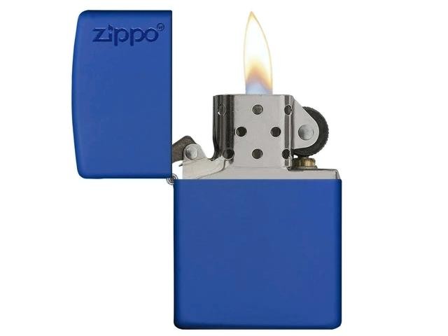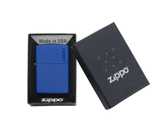 Γνήσιος αντιανεμικός αναπτήρας ZIPPO 229ZL ROYAL BLUE MATTE LOGO σε μπλε χρώμα με το κλασικό λογότυπο ZIPPO.