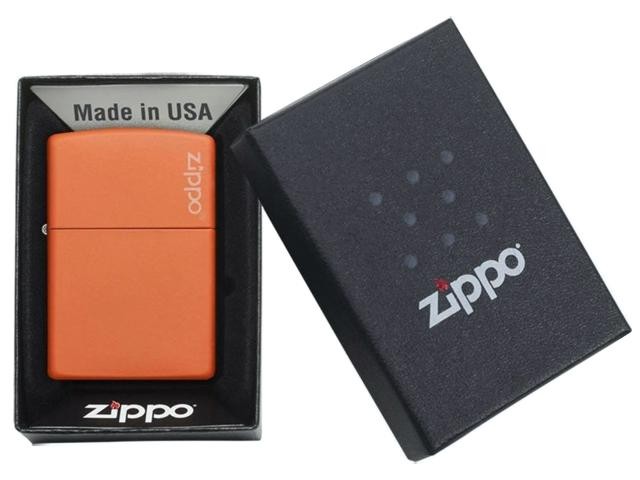 Γνήσιος αντιανεμικός αναπτήρας ZIPPO 231ZL ORANGE MATTE LOGO σε πορτοκαλί χρώμα με το κλασικό λογότυπο ZIPPO.