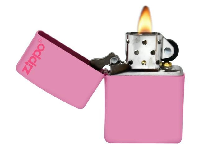 Γνήσιος αντιανεμικός αναπτήρας ZIPPO 238ZL PINK MATTE LOGO σε ροζ χρώμα με το κλασικό λογότυπο ZIPPO.