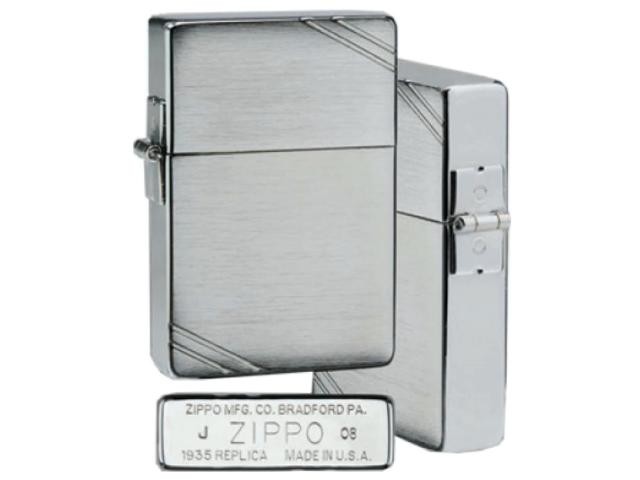 Ο γνήσιος αντιανεμικός αναπτήρας ZIPPO 1935 REPLICA W/SLASHES είναι σε ανοιχτό γκρι χρώμα και διαθέτει όμορφες, απλές διακοσμητικές γραμμές.