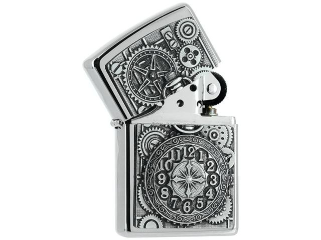 Ο γνήσιος αντιανεμικός αναπτήρας ZIPPO GR4079 POCKET WATCH απεικονίζει ένα ρολόι τσέπης και γρανάζια.